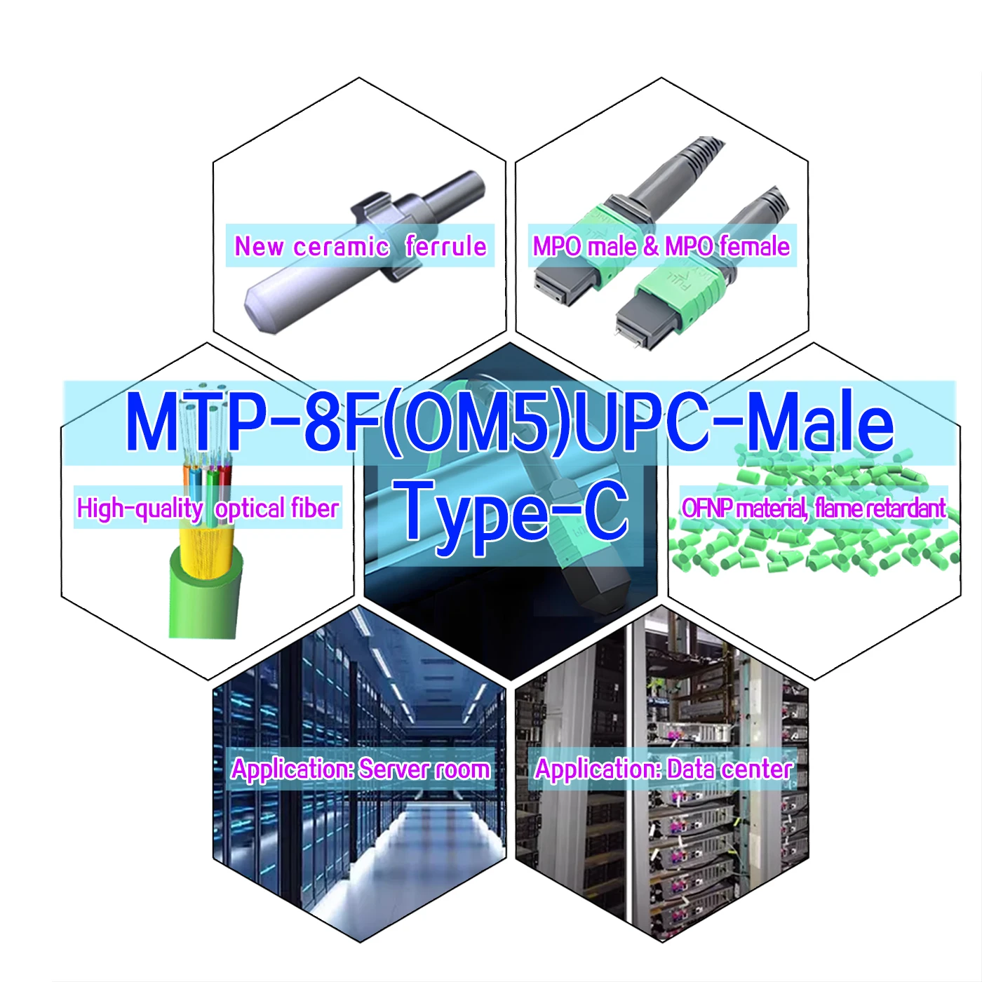 It is used for direct connection of 40G/100G optical modules, supports 400G high-speed transmission, and can improve wiring density and transmission efficiency. For example, 400G QSFP-DD DR4 optical modules can be directly connected through MPO/MTP-8 multimode fiber jumpers.