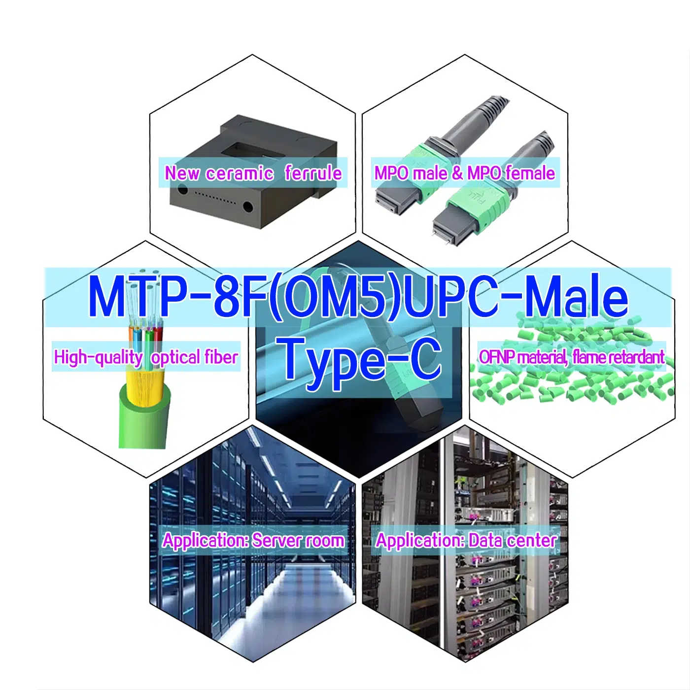 It is used for direct connection of 40G/100G optical modules, supports 400G high-speed transmission, and can improve wiring density and transmission efficiency. For example, 400G QSFP-DD DR4 optical modules can be directly connected through MPO/MTP-8 multimode fiber jumpers.